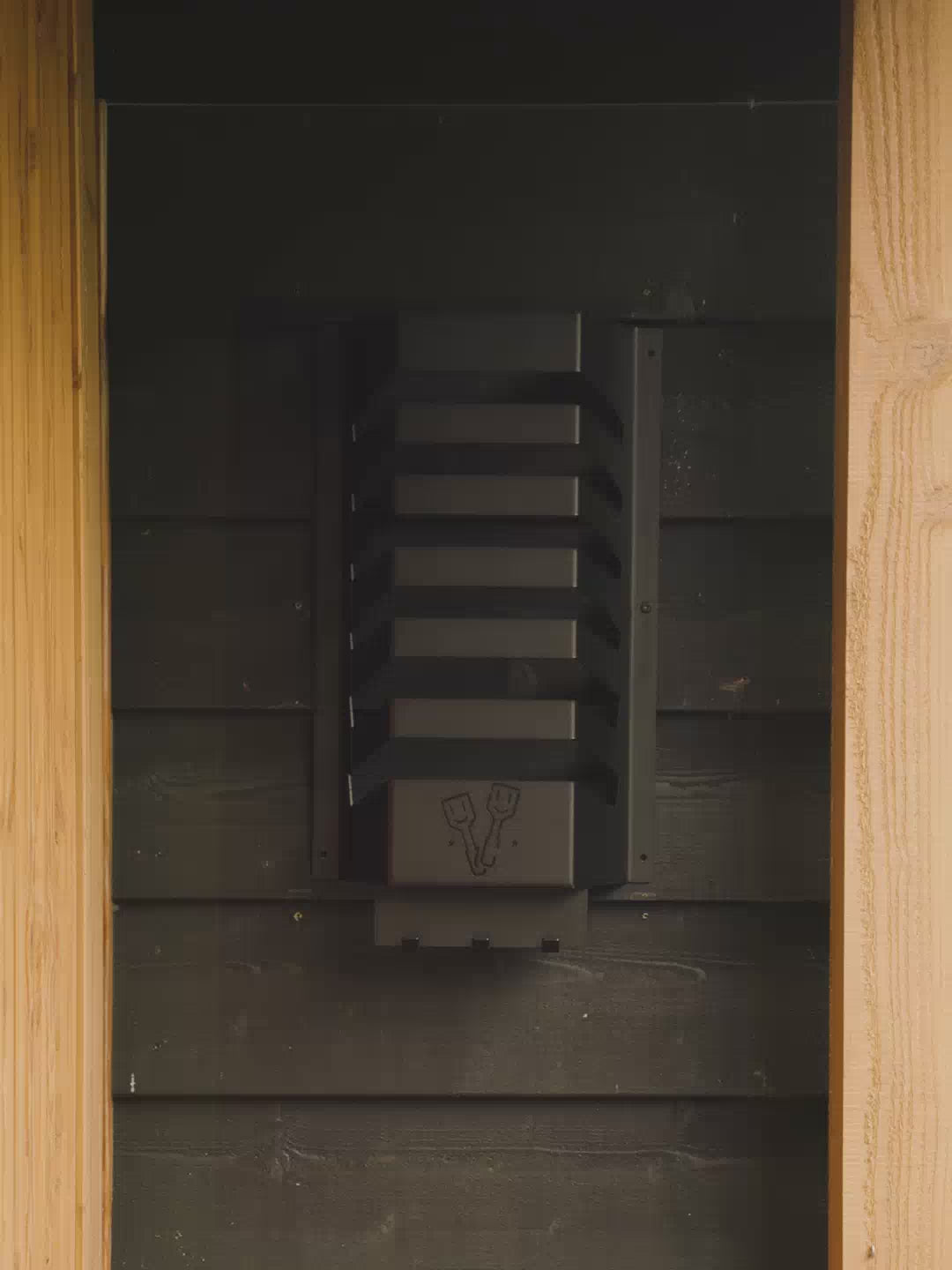 Het praktische ontwerp is makkelijk te bevestigen aan een muur in je buitenkeuken, schuur of garage. Door het duurzame materiaal blijven je spullen beschermd tegen vocht en beschadigingen.