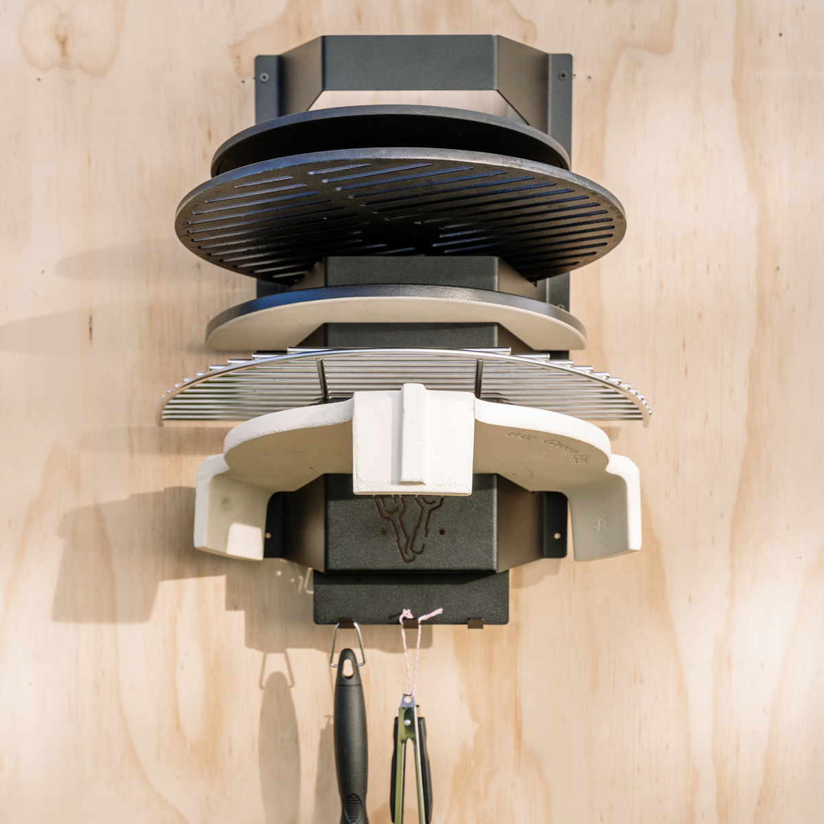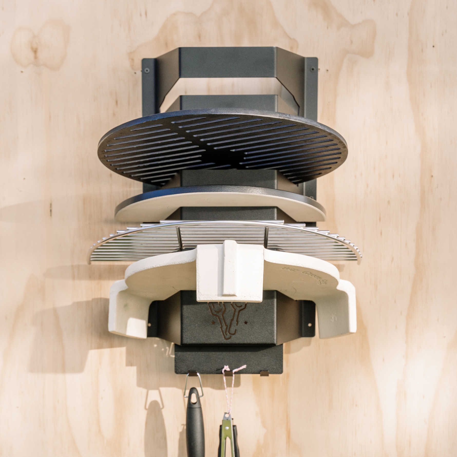 Wil je je BBQ-accessoires netjes en overzichtelijk houden? Kies dan voor de BBQBuddies Roosterhouder in Maat M. Dit veelzijdige opbergrek biedt voldoende ruimte voor roosters en accessoires van gemiddelde grootte, zodat je alles snel bij de hand hebt tijdens het barbecueën.