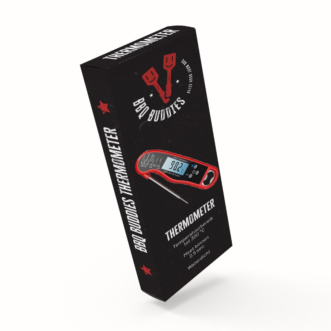 De BBQ Thermometer van BBQBuddies is perfect geschikt om snel de temperatuur van je vlees te meten.
